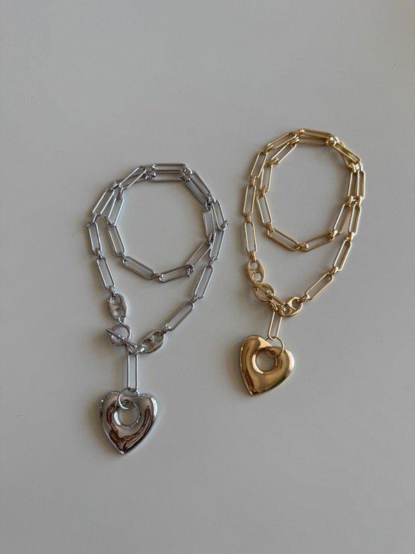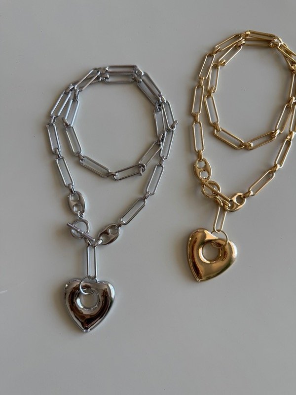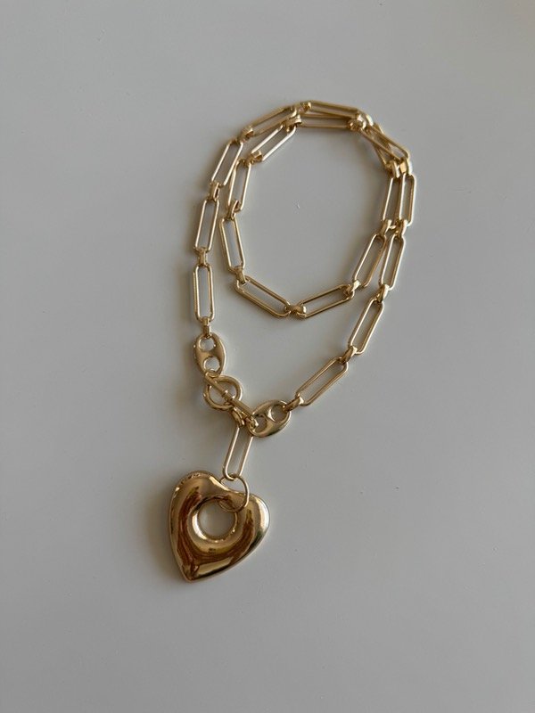 Collar largo con cadena de eslabones de metal y dije de corazon chunky.